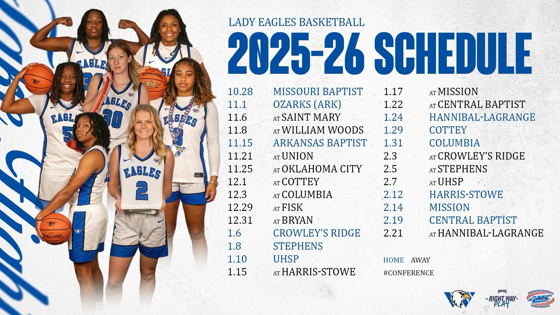 The 2025-26 season will begin on Oct. 28 when the Lady Eagles face former American Midwest Conference foe Missouri Baptist at home for the first time as a non-conference opponent. Williams will then turn around to face the University of the Ozarks for Homecoming on Nov. 1 inside the Southerland-Mabee Center.