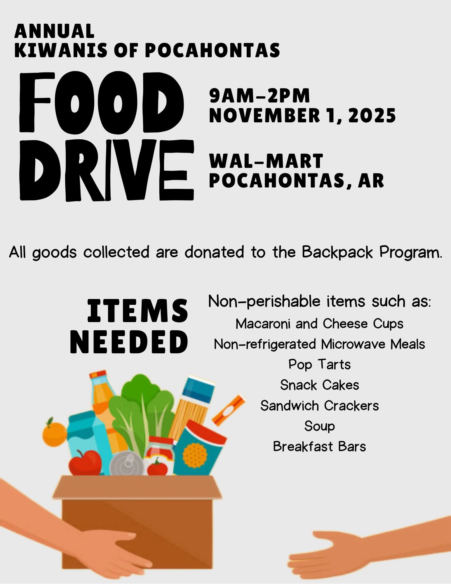 Kiwanis is hosting a food drive this Saturday at Walmart.