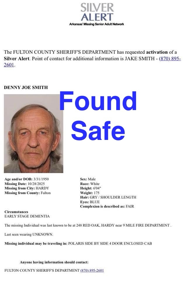 On October 28, 2025 at approximately 7 p.m., Fulton County Sheriff’s Office responded to a report of a missing elderly man in the 9 Mile ridge area.