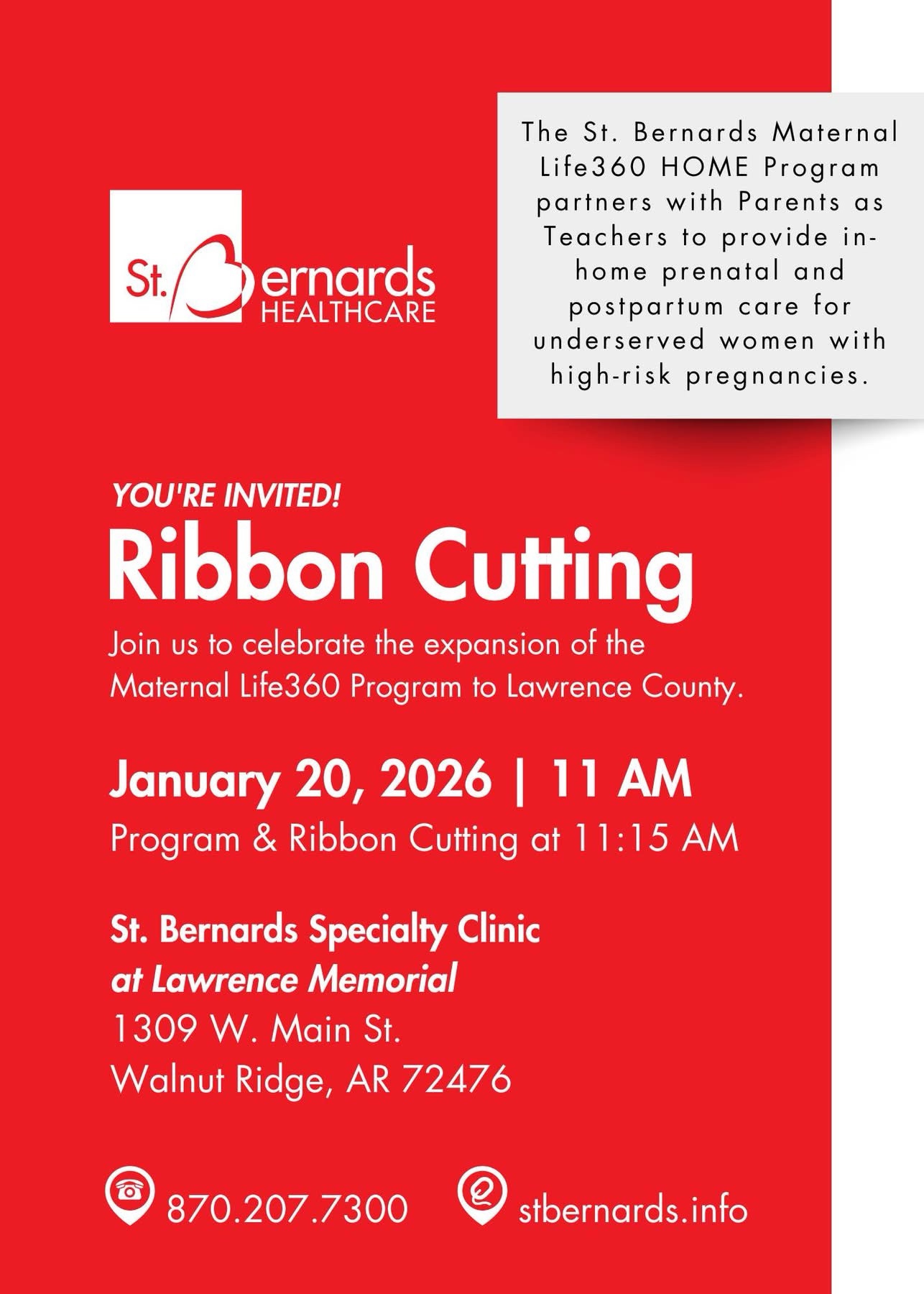 St. Benards Healthcare will hold a ribbon cutting at Lawrence Memorial Hospital on January 20th at 11am.