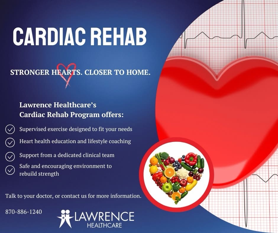 Your heart deserves expert care close to home! Lawrence Healthcare is proud to offer Cardiac Rehab, a medically supervised program designed to help you recover, rebuild strength, and protect your heart for the future.