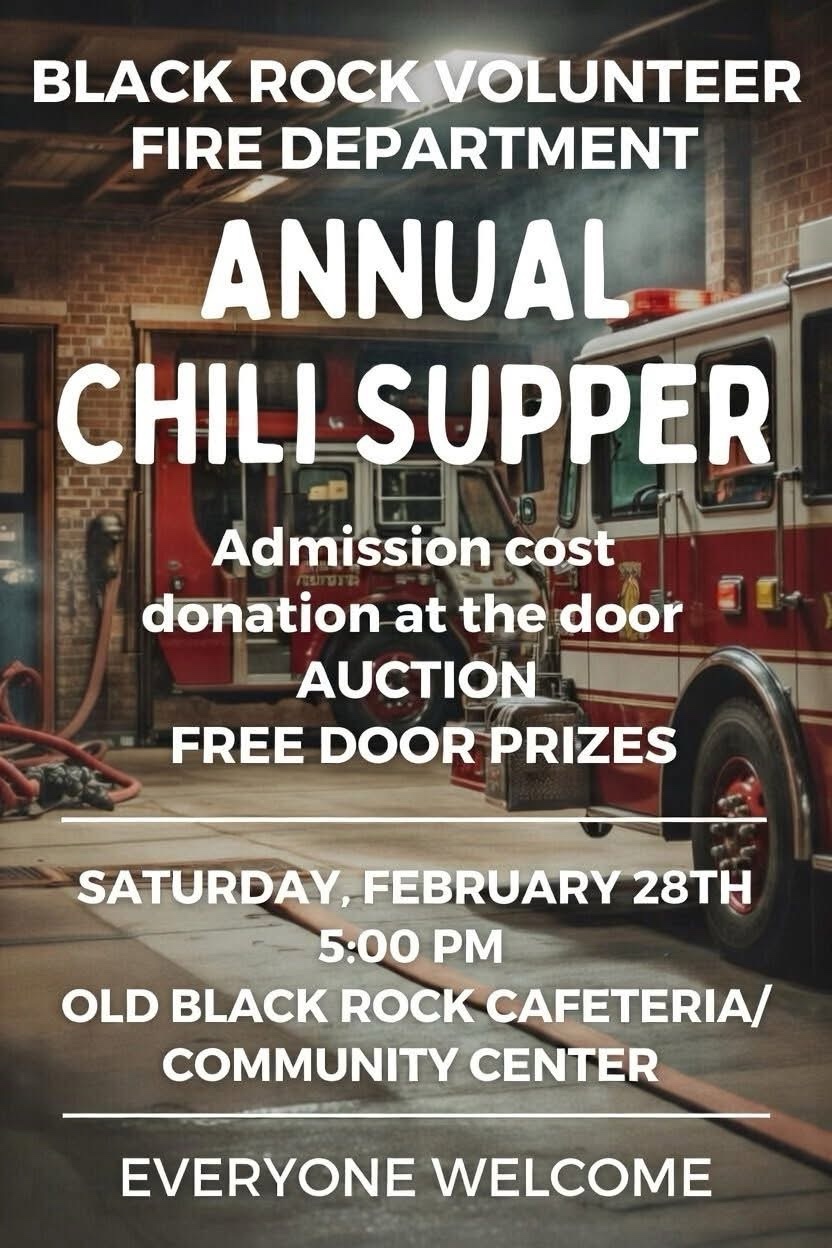The Black Rock Volunteer Fire Department will host its annual chili supper on February 28th 2026.