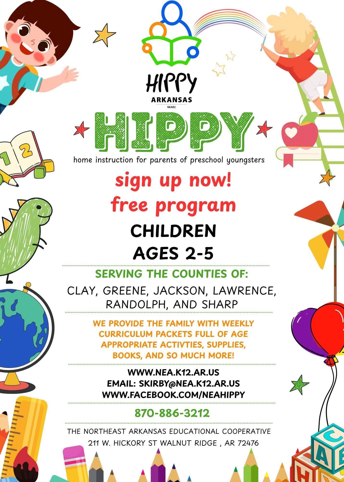 HIPPY (Home Instruction For Parents Of Preschool Youngsters) is a FREE program for children ages 2-5.