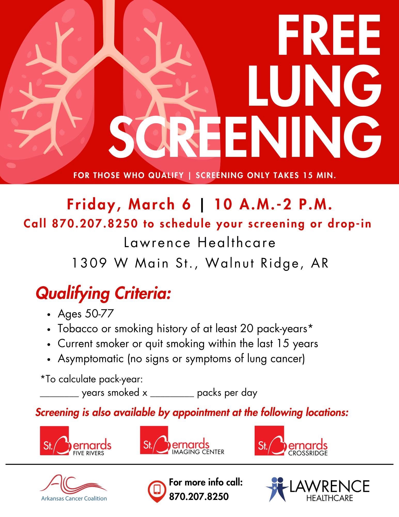 FREE Lung Cancer Screening Friday, March 6th