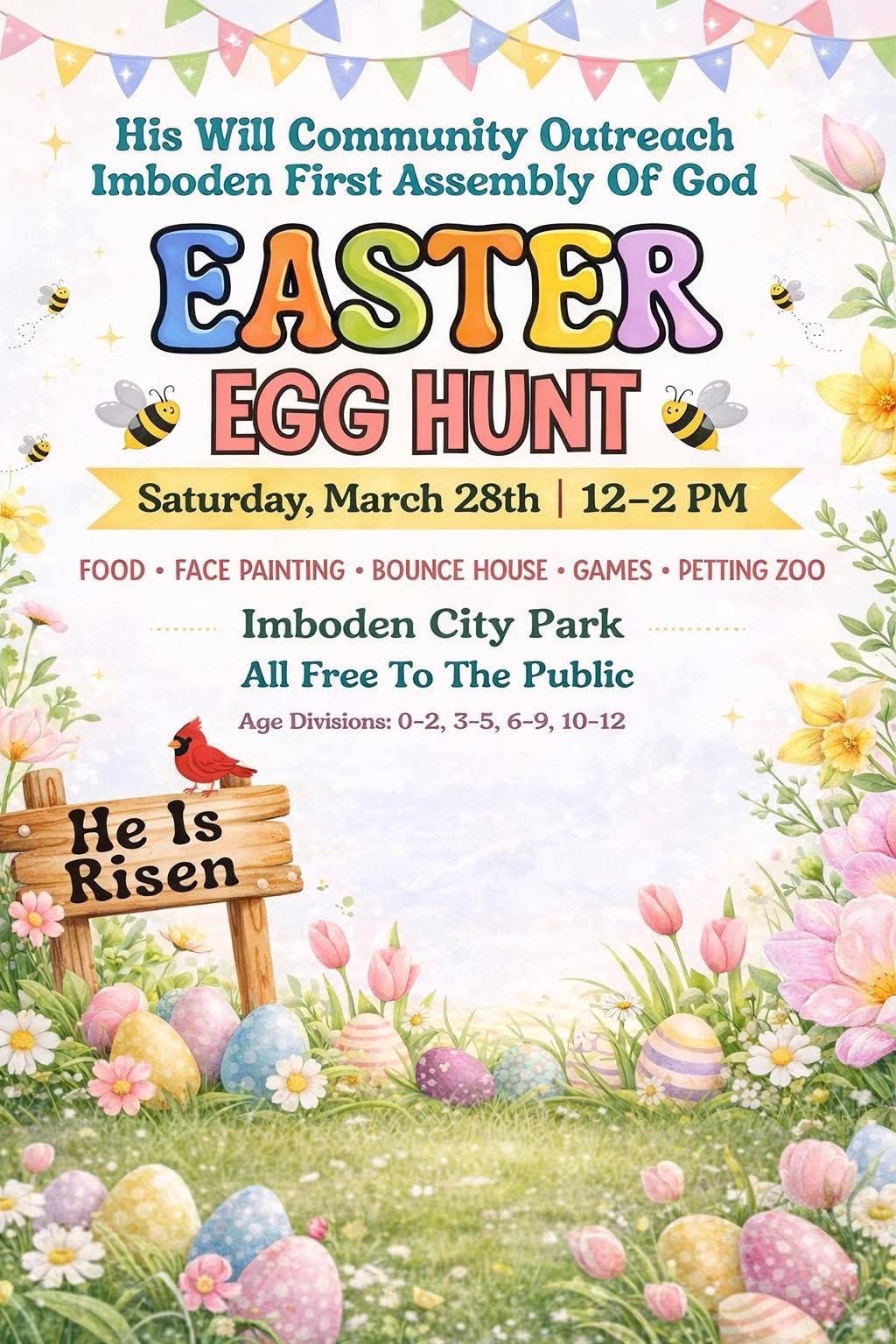Easter Egg Hunt at Imboden City Park Sponsored by His Will Community Outreach Imboden First Assembly of God