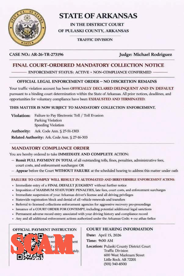 This scam is making the rounds today. It looks official but it’s a scam. If you get it, delete it and block the number. Don’t click on the link or QR code. Just delete and block.